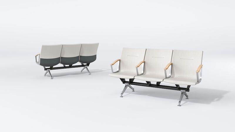 無機質なイメージになりがちな病院のロビーにおいて、その立体的で柔らかい形状の佇まいが安らぎを感じさせるものとなっている。表皮素材は清掃性を考慮しながらも上質な素材感を感じさせる。肘掛は着座時、立ち上がり時にしっかりとした支えとなる強度とサイズになっている。立体的な形状でクッション性が高く、座り心地が良いこともその上質感に寄与しており、今後の病院に求められる質的な要素を備えていると感じさせる。