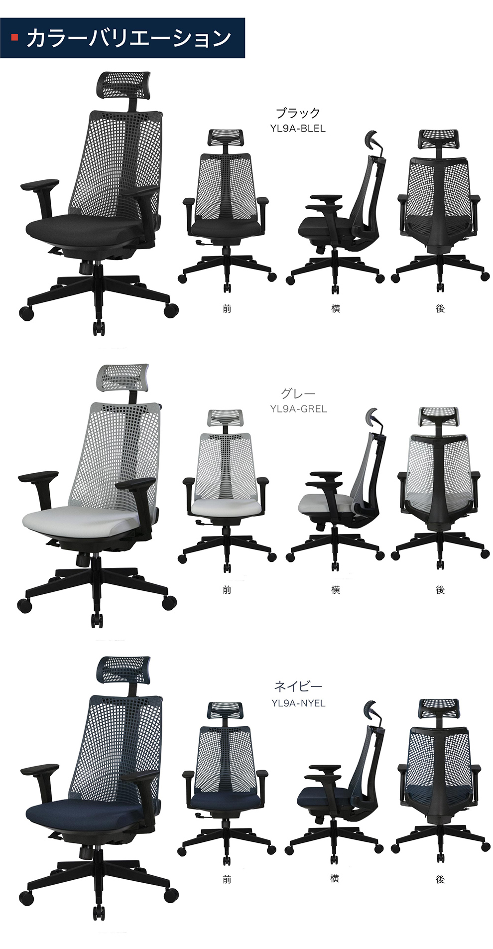 このたび、カジュアルラインの「YL9A」に新たにブラックカラーを追加ラインアップします。洗練された印象を与えるブラックは、在宅ワークチェアの中でも常に高い人気を誇る定番カラーです。