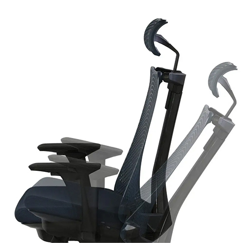上下の首振りに加え高さの調節も可能なヘッドレストはリクライニング時の頭部をやさしくサポートし、デスクワークの負担を軽減します。