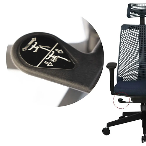 背に連動して座面後方が沈み込む、快適なシンクロロッキングを搭載。
