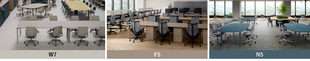 Co-Workscenesが「自然なコミュニケーションや一体感を生む居場所」を支えるのに対し、Workscene Colorsは「働く中心となる場」の質を高め、空間全体を自然につなぐことを目的としています。