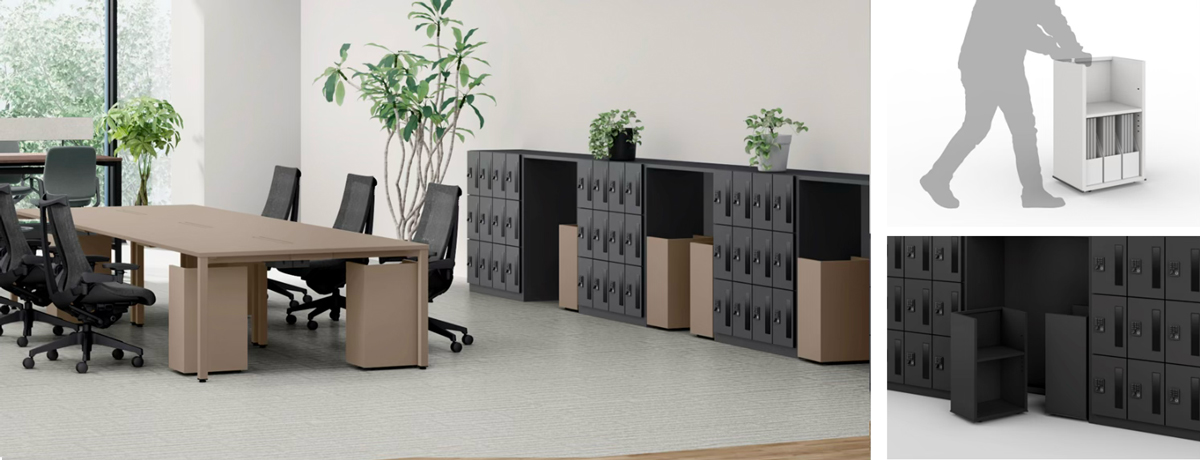 固定席のフリーアドレス化をサポートする新製品「CMワゴン」、シンプルな意匠と機能性を両立した収納「インステートワゴン」