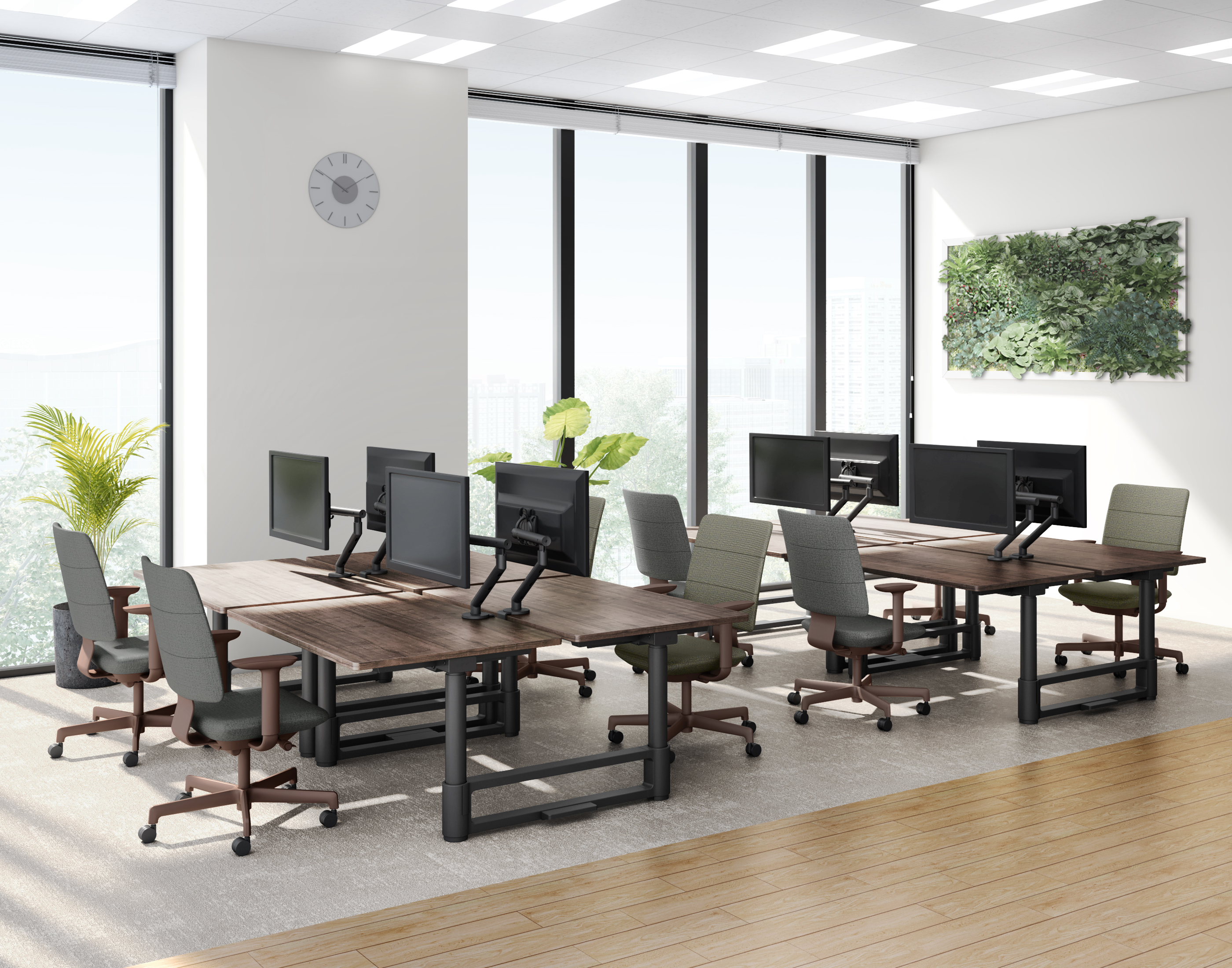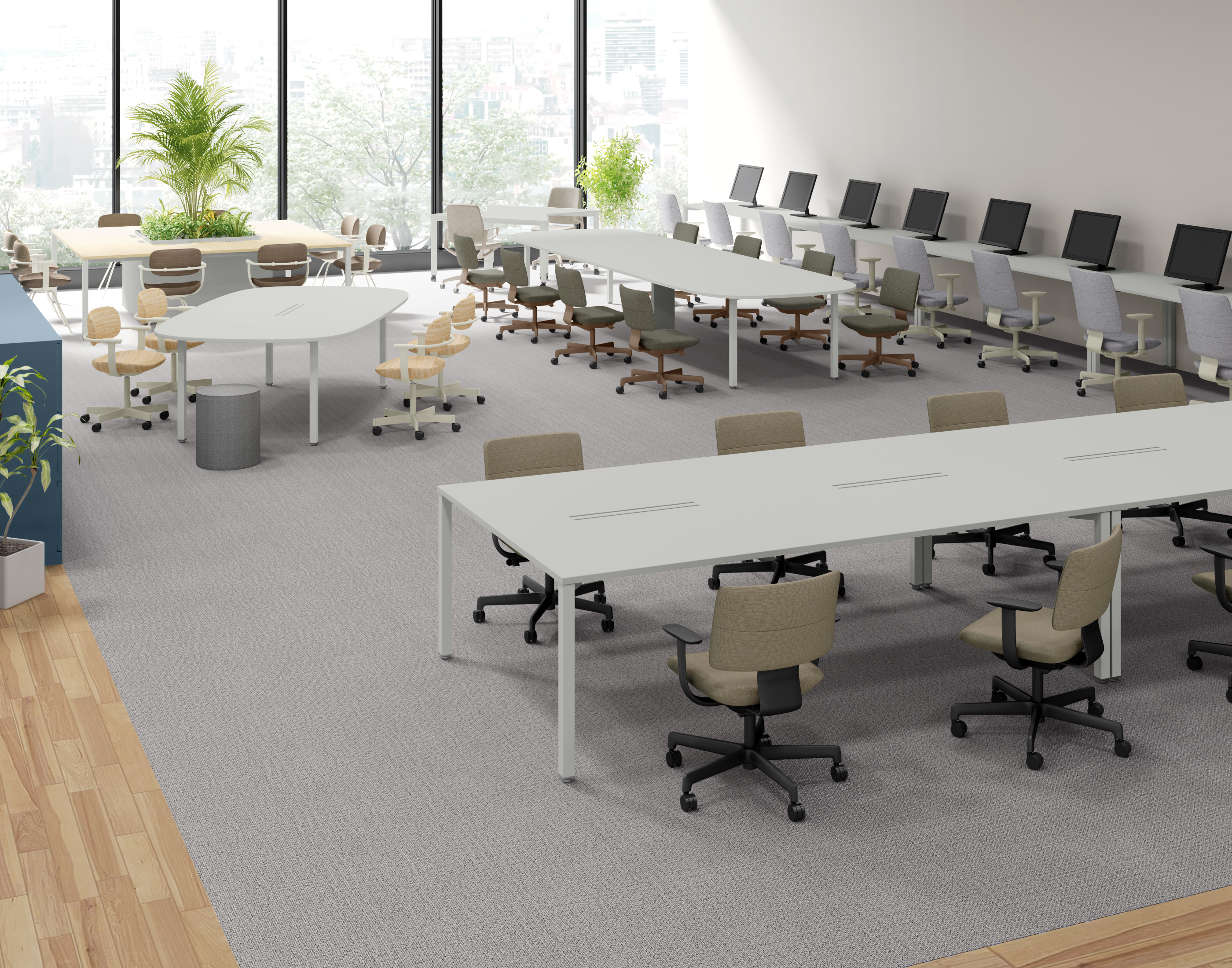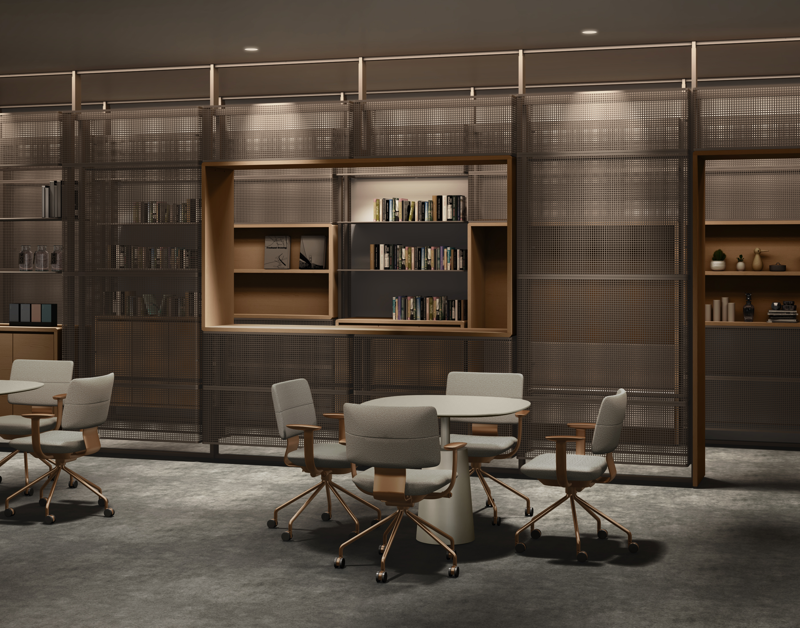 オフィスでは、木質什器やファブリック素材が混在する空間に自然に馴染み、執務エリア・ミーティングエリア・ラウンジなど、ゾーンを超えて一貫した美観を生み出します。