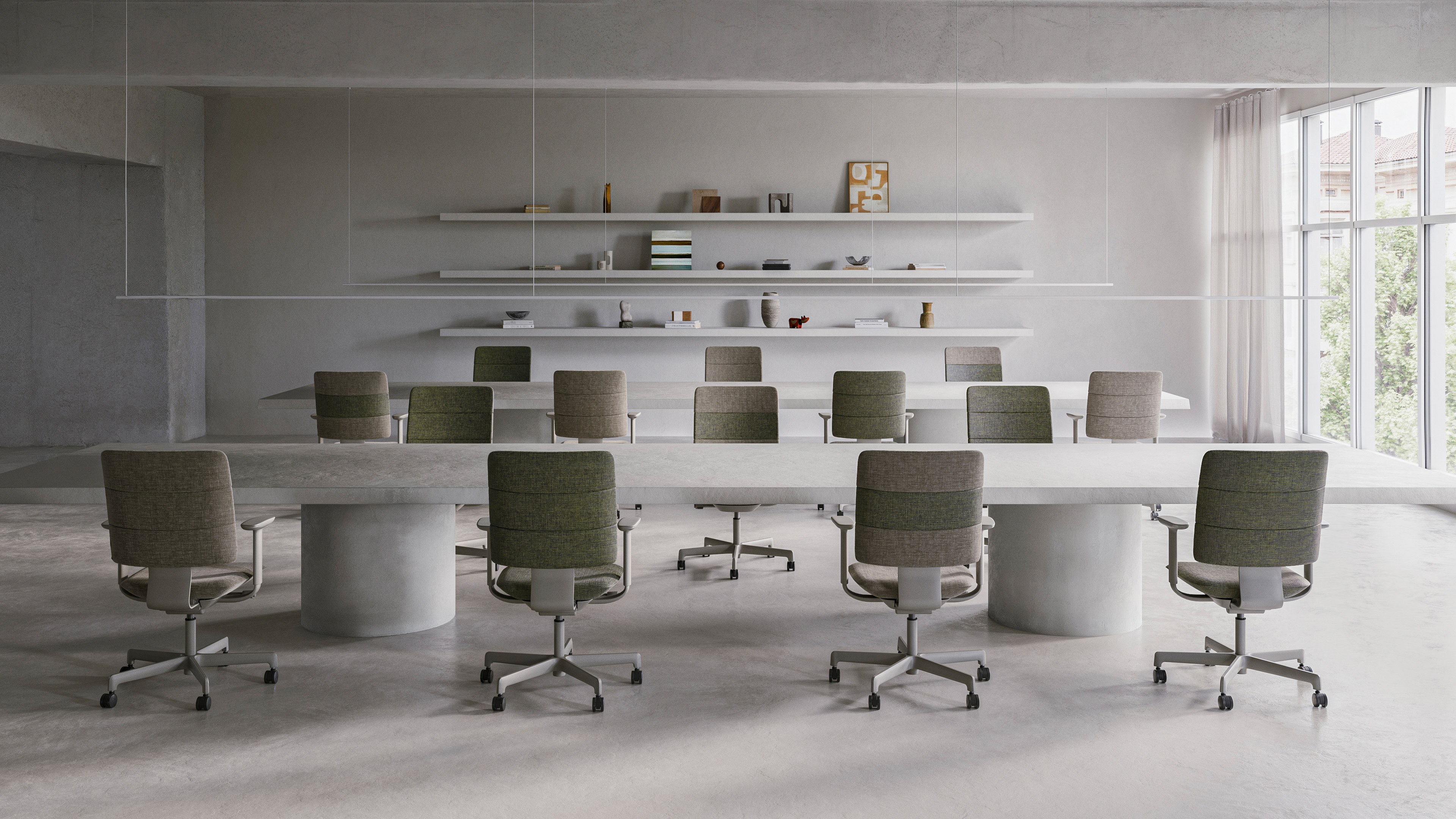 従来のオフィスチェアに多いエルゴノミックなフォルムから一線を画し、シンプルなスクエアのシルエットの中に、エルゴノミクスに基づいた3次元のカーブを内包。“存在を主張せず、使う人の姿を引き立てる”――ノイズのない形状と、身体をやわらかに支える高い快適性を両立したデザインです。