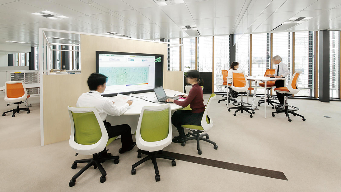 The renovated office has a new look and is now visited by many visitors. It is said that productivity has improved by allowing employees to choose their location, and this ZEB office is attracting attention as a new way of working.