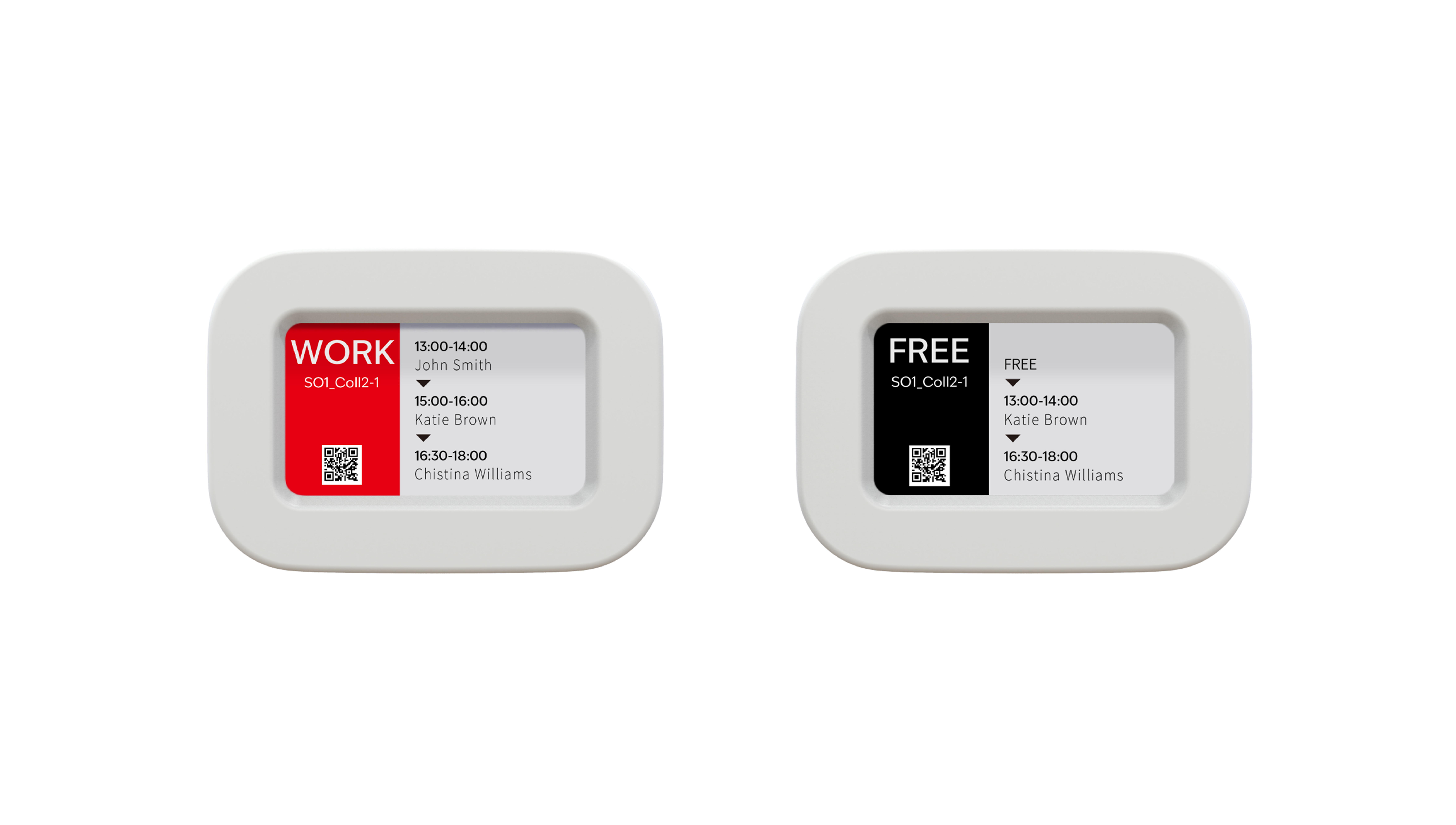 Using energy-saving electronic paper and wireless communication, it consumes power only when switching the display, so it is battery-powered and does not require wiring. In addition, it comes with attachments for desk and wall mounting, making it easy to install in a variety of spaces.