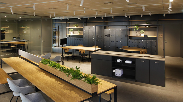 そうですね、やはりこれからの時代では、地盤の確かさと柔軟性をあわせ持つオフィスが望まれていくと考えます。もし今、部署の島ごとに棚や機器などを設置しているならば、全体としての最適化をはかり、たとえばキャビネットはオフィスの共用しやすい場所にまとめて設置するなどの工夫をすることで、ぐっと働きやすさが向上します。その分、多機能なオープンミーティングスペースを設けるなどして、全体の交流をしやすくするといったことが考えられます。