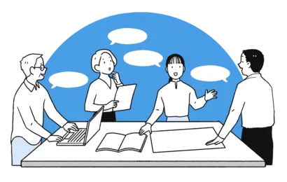 企業の働き方に合わせたオフィスデザイン、コミュニケーションを促進する空間配置など、移転の目的に沿ったオフィスづくりに向けて、実際に働く従業員や専門的な知識をもつ部門から意見を吸い上げながら、プロジェクトを推進します。