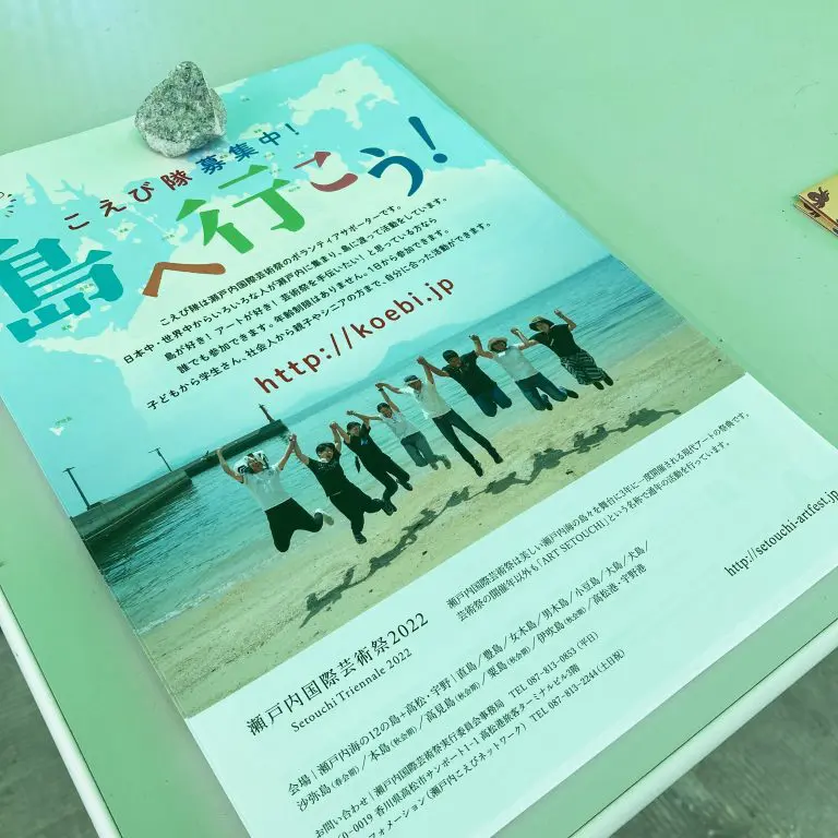 今回は、こえび隊の運営などを学ぶために、5日間、スタッフとして瀬戸内国際芸術祭に来ているそう。奥能登国際芸術祭でも、ボランティアサポーターを募集されるそうなので、ぜひ、関心のある方はサイトを覗いてみてください。