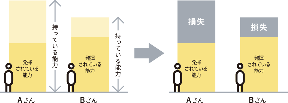 パフォーマンスとは、持っている能力が 発揮されている度合い。能力開発や人材確保に投資しても発揮されない能力は経済的な「損失」となります。